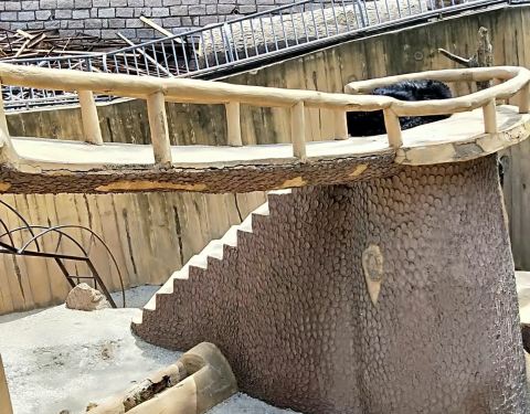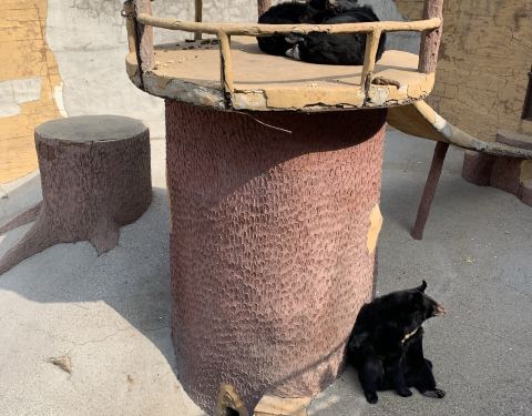 小黑熊们太可爱了,懒懒的爬在栏杆上,像极了小孩子