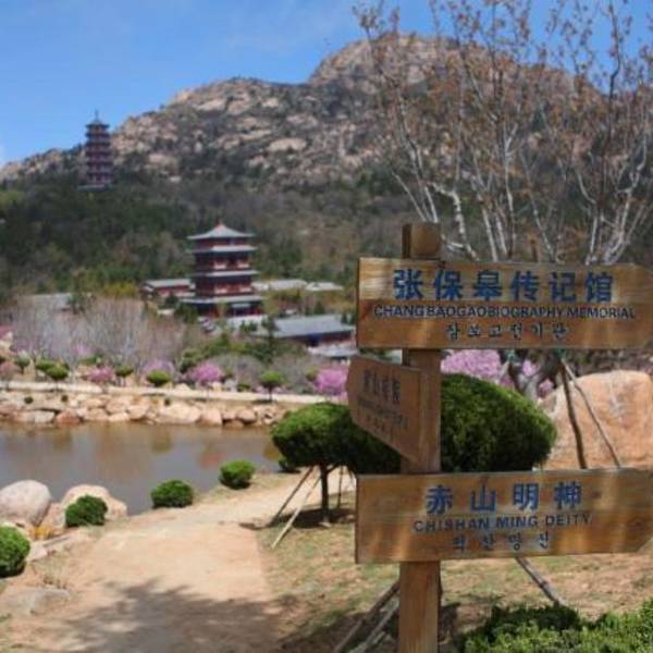 赤山风景区简介 “山海有奇观,威海看赤山”,赤山风景区位于威海石岛湾畔,因海拔369米的赤山主峰在太阳照射下颜色泛红而得名“赤山”。景区方圆12.8平方公里,是国家AAAA级旅游景区,省级风景名胜区,森林植被覆盖率达95%以上,负氧离子含量每立方厘米高达6万多个,是一处天然的森林氧吧,也是森林养生国家重点建设基地。 这里云雾缭绕,风光秀丽,古有“神灵归赤山”的说法,给这座海边的东方神山添上了一抹神奇的色彩。赤山风景区所供奉的主神是赤山明神,赤山明神本相出于赤山红门洞,相传赤山明神是上古时期先民崇拜的日华君——太阳神分身赤山的化身,他镇山护海,威力无边,护佑沿海渔民鱼虾满仓、平安归来。千百年来正是因为赤山明神的护佑,这里的百姓安居乐业、平安顺遂,因此其神通与功德倍受人们信仰崇拜,于是人们将海上守护神赤山明神奉为平 安 神。新罗人张保皋在公元824年于此处兴建了赤山法华院,后来日本高僧圆仁法师三赴赤山,客居法华院两年零九个月。赤山风景区在唐 朝名扬天下,则因圆仁法师著成《入唐求法巡礼行记》,讲述了赤山明神保佑其从赤山浦(今石岛湾)顺利归国的奇遇,圆仁弟子后遵其遗愿修建了供奉赤山明神的赤山禅院,而张保皋也在新罗兴建了两所赤山院供奉明神,以感恩在明神护佑下成就其海上贸易王和民族英雄的威名。自此,赤山明神渐为唐 朝及东瀛、新罗、波斯、大食等国所奉祀,也因法华院的存在,牵起了一段“千年一寺连三国”的缘分。 赤山风景区以“东方神山”、“佛教胜地”、“海岛民俗”、“森林公园”等著称,主要景点有一寺连三国情传中韩日的千年古刹——赤山法华院,以吉祥平安为主题的大型动感音乐喷泉广场——吉祥平安谷,高58.8米的平 安 神——赤山明神,讲述韩国海上王张保皋传奇一生的——张保皋传记馆,记述日本高僧圆仁法师入唐求法经历的——赤山禅院,中国北方民俗文化博物馆——荣成民俗馆,非遗民俗文化体验地——赤山非遗创客中心,著名水石文化馆——世廉雅石馆,观音菩萨的清修地——观音坛,演绎唐玄宗和杨贵妃凄美爱情故事的——“龙凤珏缘”玉雕馆,以及法华塔、龙凤湖、百花园、大明圣境等诸多景点,是滨海风情游、山海景观游、渔业民俗游、宗教朝 圣游的世外桃源。