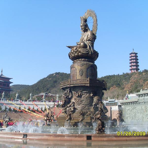 来胶东名刹法华院祈福礼佛,参拜世界最大的锻铜神像,观气势恢宏的动感音乐喷泉。
