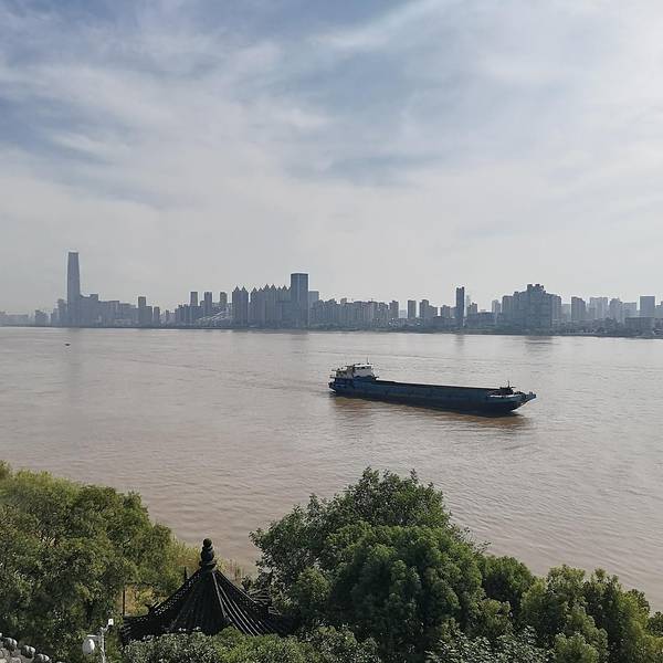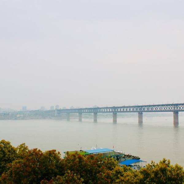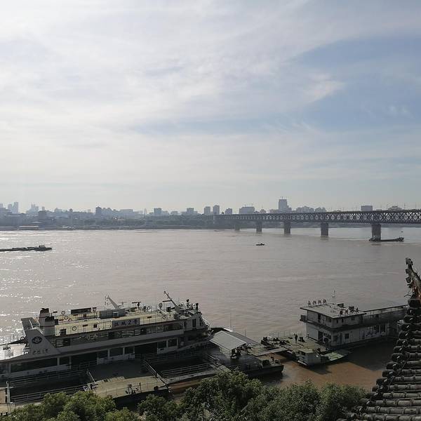 濒临长江,登上楼顶,遥看武汉三镇和长江对岸的黄鹤楼。