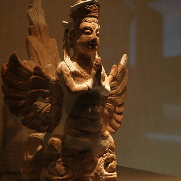 人面鸟身的迦陵频伽,脸颊丰腴,双手合十,长尾高翘,是净土世界里面的一个吉祥鸟,声音像佛的声音一样美妙,所以又被称为“妙音鸟”。他们原在建筑的屋脊之上,寄托了西夏帝王对美好的佛国世界的向往。出土的妙音鸟种类繁多、型号各异,主要有红陶、灰陶和绿釉陶3种,总数有上百件之多,参观博物馆时可以仔细欣赏。