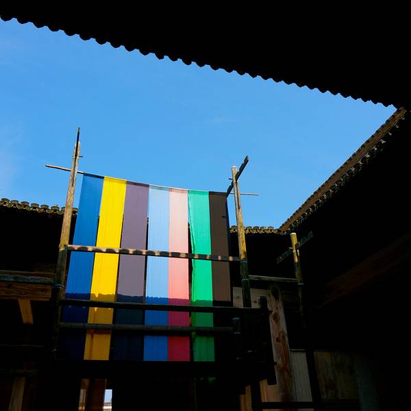 南屏最具特色的应属祠堂群。叶氏宗祠,距今已有530余年历史,因拍摄电影《菊豆》而名扬天下,被众多人熟悉,来南屏的游客,大都会来此,看看电影中的“老杨家染房”究竟是何般摸样,如今叶氏宗祠里依旧完全保存着当时电影拍摄时的道具,彩色的织布,于一口天井下艳丽,让我想起了电影中的菊豆,想在秩序堂这个祖训礼教中璀璨,是那么难。