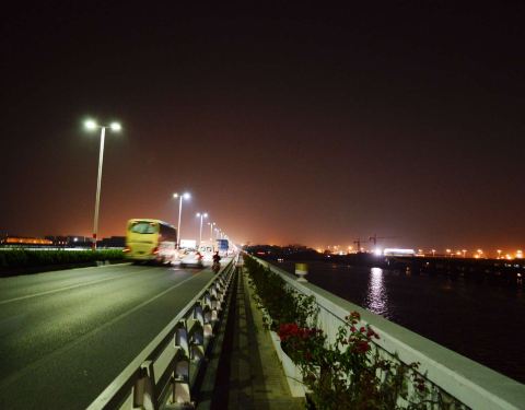 实际上这座大桥是不鼓励人 步行的哦,因为没有明显的人行道,只有一条大概只有80厘米宽的临时人行通道,根本没有专门的人行道。整个大桥上的车开得非常的快,建议人都的话不要在桥上走。