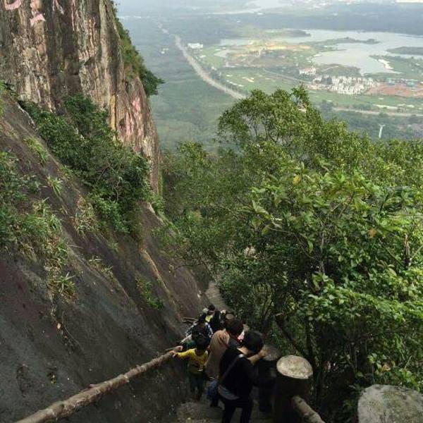 取票的时候人不多,一会就搞定了,风景好,特别是山顶,景色超级棒,不上顶一定后悔。坐缆车也蛮特别的,缆车坐到山的一半,然后自己爬到山顶。快到顶上的路上还有在建新的观景台和小吃街,以后肯定很不错。就是坐缆车的时候就有人给你照相了,不买都没办法,10元一张取了相片就算了,下山的时候既然又把我们的相片做成了钥匙扣,不买的话自己的相片还不知道被他们怎么处理呢,太过分了都没人管的吗!除了照相一路上都挺开心的。