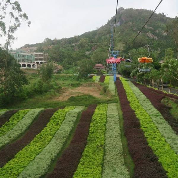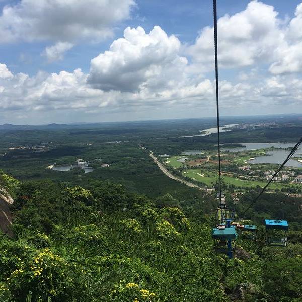 海南白石岭旅游区拥有众多奇峰怪石,最高峰登高岭海拔328米,山虽然不算高,但景色十分秀丽,登顶更是可以将琼海全貌尽收眼底。 游玩海南白石岭旅游区可以沿着石阶一步步向上,也可以直接乘坐索道上山。沿途风光多样,怪石嶙峋,山水相映,山脚的玉泉河如玉带一般蜿蜒而过,给人移步换景的感觉。登至山顶往下望去,高尔夫球场、大片椰林、槟榔树交相辉映,远处还散落着些许村庄,一片静谧而辽阔的美景。