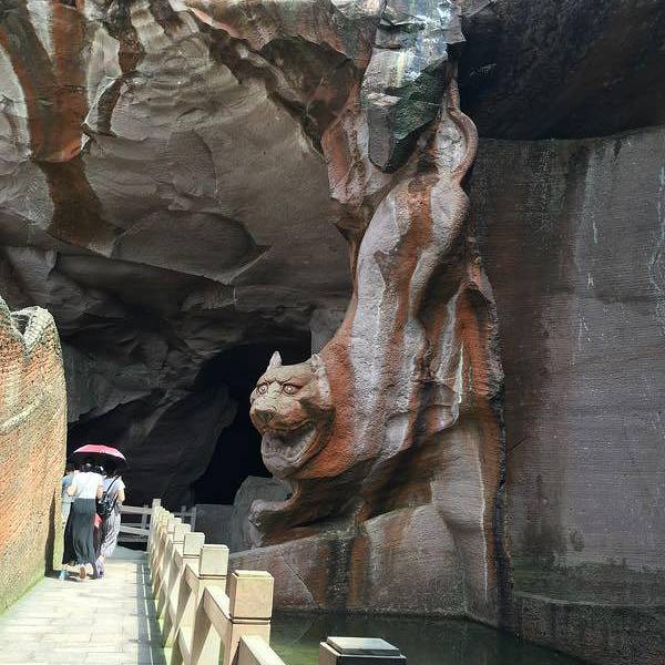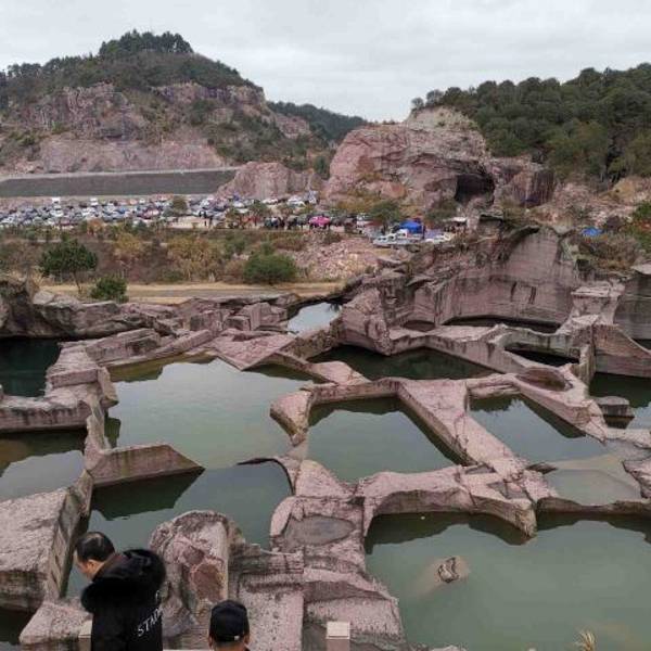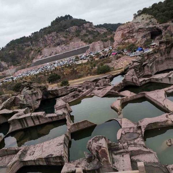 蛇蟠岛位于三门县东面的三门湾内,这里和蛇没什么关系,倒是有许多古时采石留下的如蛇一般蜿蜒曲折的石窟洞穴。岛上有海盗村、蛇蟠岛野人洞和滑泥公园三个主要景点,建有不错的度假酒店,是江浙游人周末度假的不错选择。 由于各景点之间尚没有固定的交通车,岛上更适合自驾或者跟团游。从三门出发通常由上敖码头乘渡轮上岛,渡轮大约半小时一趟,几分钟便到对岸。蛇蟠岛的面积和澳门差不多,自驾的游客不妨将车一并渡到岛上,出行更方便。若是从北面的宁海县出发,也可沿蛇宁线开车上岛。 码头和几个主要景点集中在小岛南面,蛇蟠岛野人洞离码头只有几分钟路程。“野人”指的是采石工和曾在洞穴中居住的岛民,这个洞穴便是古时的一个采石场。顺着水边步道走过如同水帘洞般的洞口,正式开始游览。置身洞穴内,四壁是采石留下的嶙峋的形状,抬头可见运送石料的方形洞口,采石工行走的楼梯沿着石壁曲折伸向顶部,可以想象当年靠人力将大石头向外搬运的场景。沿着步道走到洞外高处,可俯视下面的潭水和水上步道。后面的洞穴是浙东南地区石窗艺术的集合。石窗上镂空的花鸟、钱币等吉祥图案,配合着的凹凸的洞壁、碧绿的潭水,有种别样的美感。此处的标志性景观是一尊巨足雕塑,后面的石壁上刻着“野人家住神蛇顶,石骨撑空芒射日”,据说这句诗是蛇蟠岛野人洞名称的由来。 出蛇蟠岛野人洞,继续往东前往海盗村。海盗村距离其大约2公里,是一处以海盗文化为主题的海岛洞穴,也是采石遗址。这里的洞体错综复杂,相互之间有小洞相连,纵横交错犹如迷宫。此处大致分为“东海枭雄”、“山海会盟”、“海洋经略”等部分,以孙恩、卢循、方国珍、王直、郑芝龙五位中国海盗史上的代表人物的事迹为线索展开。除了采石痕迹,洞中装饰着许多后来人工加上去的雕塑作品,如狮子、鳄鱼等,山顶上还插着海盗旗,让人有几分走入海盗老巢的感觉。然而,除了这些后人的修饰,海盗村较棒的景色须走到高处才能看到。沿着步道走到山顶,俯视下方大大小小的方形水窖,是岛上的标志景观之一。傍晚的夕阳照在远处的滩涂上,美丽异常。 蛇蟠岛度假酒店和滑泥公园在以上两景点之间,度假酒店标间价格大概300元起,园林式的风格,环境不错。岛上的滑泥公园每年约4月中旬起开放,夏天带上小朋友在成片的滩涂中玩泥巴,挖小蛏子、小蛤蜊,也是难得的欢乐回忆。