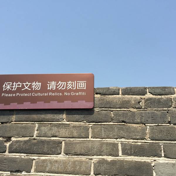 文明旅游:请勿在城砖上刻字,保护文物,做高素质游客。
