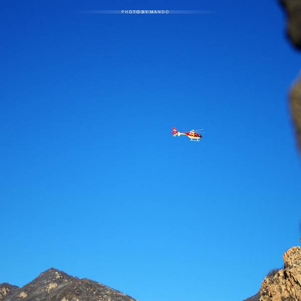八达岭长城的高度并不高,乘坐索道到达的地方,离好汉坡也不远,2个烽火台的距离。不过这一段路比较陡峭,且有一段不是台阶,直接就是陡坡,老年人千万不要在冬天去爬,正常人的速度30分钟就可以从索道出站口到达好汉坡。我们去的时候长城上面有结冰,特别的滑,直升机也频繁的在巡逻。