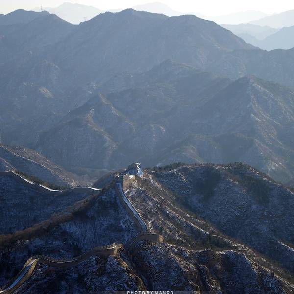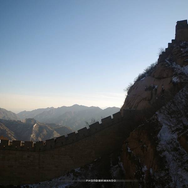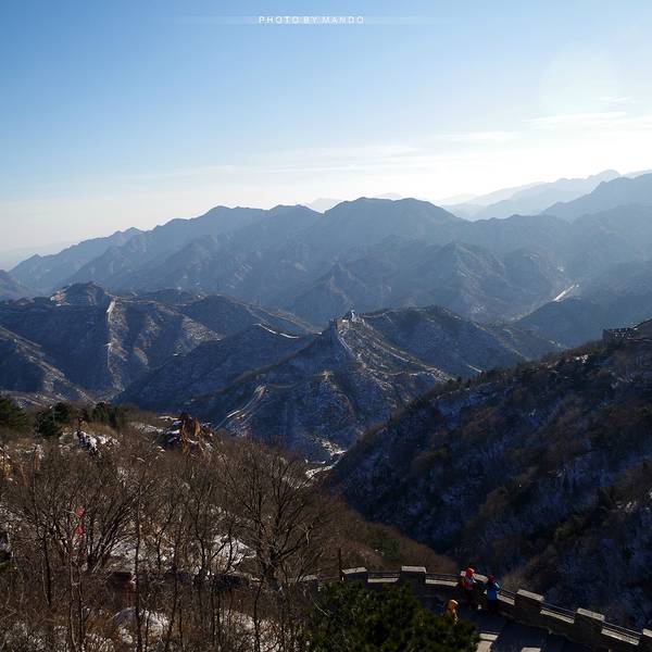 冬天虽然没有绿意盎然但是因为草木凋零,俯瞰山峦有一种悲壮之感。景色也特别的壮阔。特别是爬到好汉坡上拍下的长城四处衍生的照片,可以想象到长城在古代军事的地位有多高。