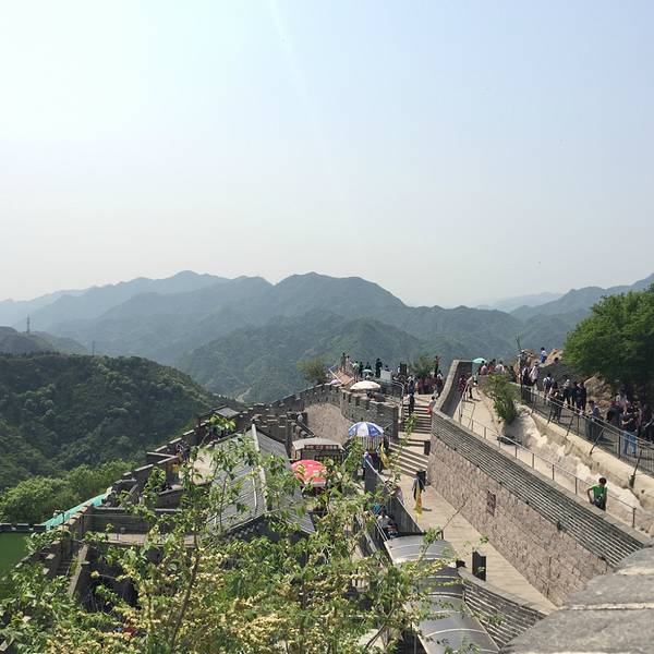 金骆驼 不知道这些人算是多还是少旅行意义就是走走停停,看看风景,长城的雄伟壮阔让你不得不佩服古人的智慧和毅力前一天玩得太晚,早上出发迟了,计划是乘坐S2去八达岭,乘坐地铁来到西直门(北站)已经九点了,一看下一班S2要12:40分发车,Mygod!果断又返回地铁,坐到积水潭A出口往德胜门箭楼方向走,路上会遇到很多拉客的,...前一天玩得太晚,早上出发迟了,计划是乘坐S2去八达岭,乘坐地铁来到西直门(北站)已经九点了,一看下一班S2要12:40分发车,Mygod!果断又返回地铁,坐到积水潭A出口往德胜门箭楼方向走,路上会遇到很多拉客的,比如往返30元、“原877/919站点”等等,这种千万别信。大家就一直沿着路往前走,会看到箭楼(类似钟鼓楼),到箭楼下面就会看到877的站点了,919不到八达岭了,只有877路到,人也不多,排队5分钟左右就可以上车了,我没有交通卡,车票12元,路上不堵车的情况下大概1个小时多一点就到八达岭了,中途不停直达八达岭,很快。建议大家起的不早的话就不要去坐S2了,人太多了,而且要很早过去,还未必能赶上车,班次太少了。877公交上导游路上会讲一些注意事项,当然重点是最后要介绍下登城方式,推销滑车登城的套票。大家也不用担心买不买会怎样,导游下车会让大家在售票口排队,你买哪种随意,没有强制购买。普通门票40元,滑车票单程80元,往返100元(有点贵),是从熊乐园送到北4楼。如果是体力可以的话,就不要买了,走上去吧,个人觉得滑车票太贵。如果是有老人小孩的话,可以买个滑车往返,省不少时间去爬长城北四楼到北八楼一段。4月下旬,第一次来八达岭,不知道这些人算是多还是少旅行意义就是走走停停,看看风景,长城的雄伟壮阔让你不得不佩服古人的智慧和毅力。