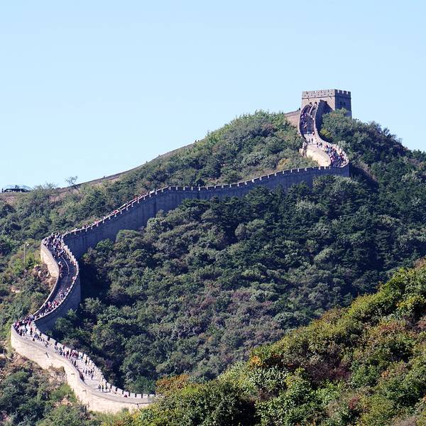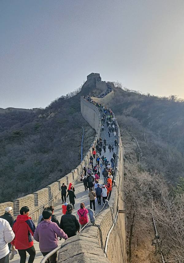 2、长城上部分地段坡度很大,最好穿旅游鞋,尤其是女士不要穿高跟鞋。