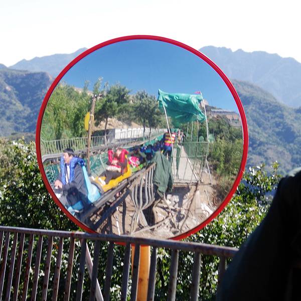 每辆877路车上都有一个跟车讲解,快到的时候会讲解登长城的几种途径,她推荐的是在前山坐滑车登上去(当然肯定是拿提成的吧),在排队买票处每个跟车讲解会把自己车上的游客排在一个窗口前买票,这边规定65岁以上的老人是不可以坐滑车的,但是讲解说直接买成人票就行,有人问年龄就说不到65呢,查身份证就说没带(也是蛮不负责的说)。