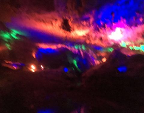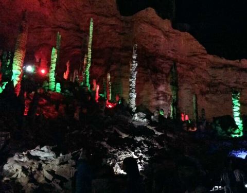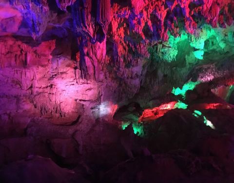 地方很大,溶洞灯光非常震撼!!特别那里的烤香猪特别好吃,推荐8人左右一起去