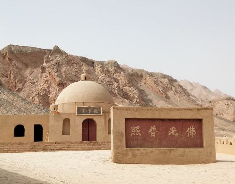 ...就在火焰山景区的背面,高昌故城景点的入口处附近,万佛宫是一个新建不久的小景点,顺路可以去看看的