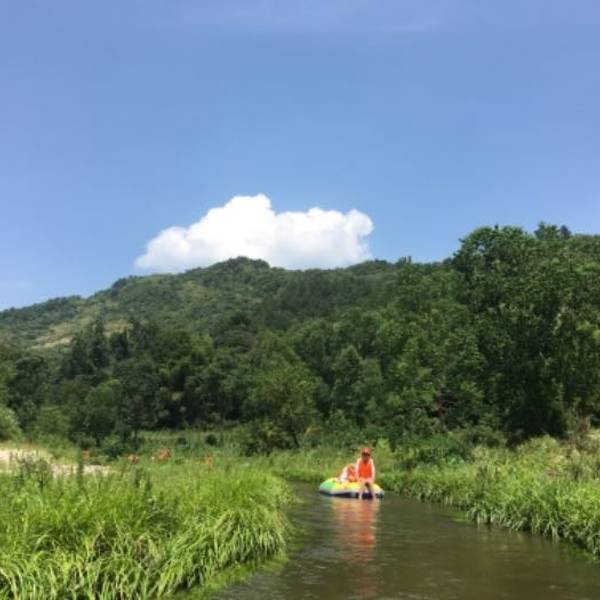 麻城天景山大峡谷飞瀑漂流,这是我最难忘的一次漂流体验。从武汉出发走武麻高速沿合肥方向一个半小时车程就下高速了,下了之后风景优美的旅游公路赏心悦目,走八公里就到了上游起漂点,本来可以直接开漂了,但是去的当天是6月18号要举行开漂仪式,人有点多,我们一行就先开车到上面的水库去转了转,也算是心旷神怡。接下来的重头戏漂流果然也是没让我失望,天然的河道前半段有缓有急,后半段的飞瀑过山车很刺激,但是设计合理,虽然说吓出了一身冷汗但是有惊无险,全部漂下来2个多小时,实乃一次身心愉悦的清凉之旅,值得武汉周边的盆友前去体验。给他们的广告语【漂了天景山,那才叫夏天】点个赞