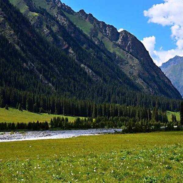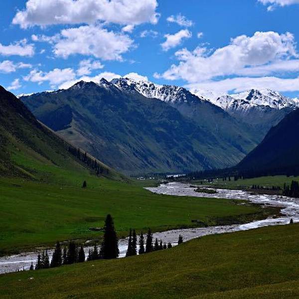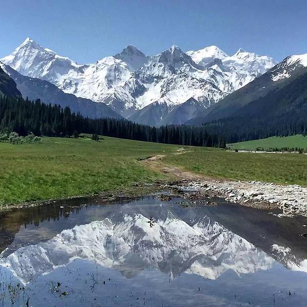 里面是雪松,雪山,冰川,草甸,美不胜收夏塔距离昭苏县城约一个半小时,从景区正门走进去还需要坐四十分钟的区间车。里面是雪松,雪山,冰川,草甸,美不胜收