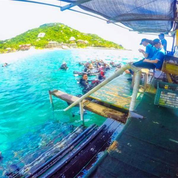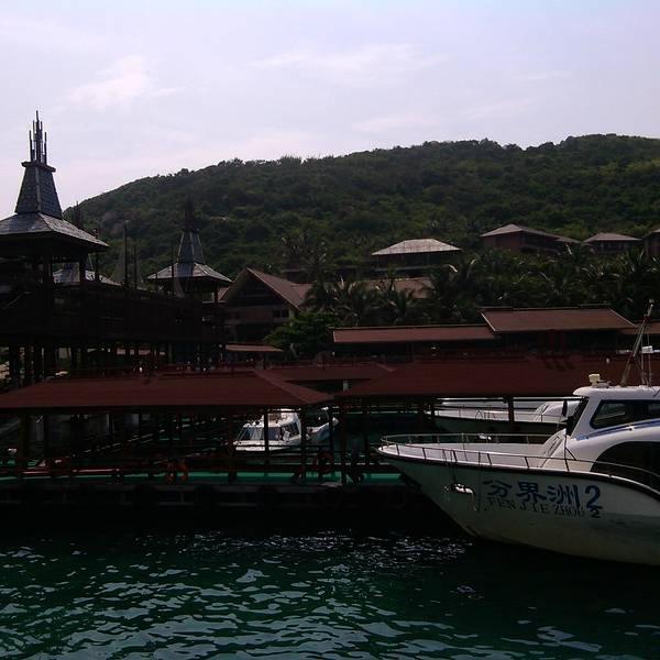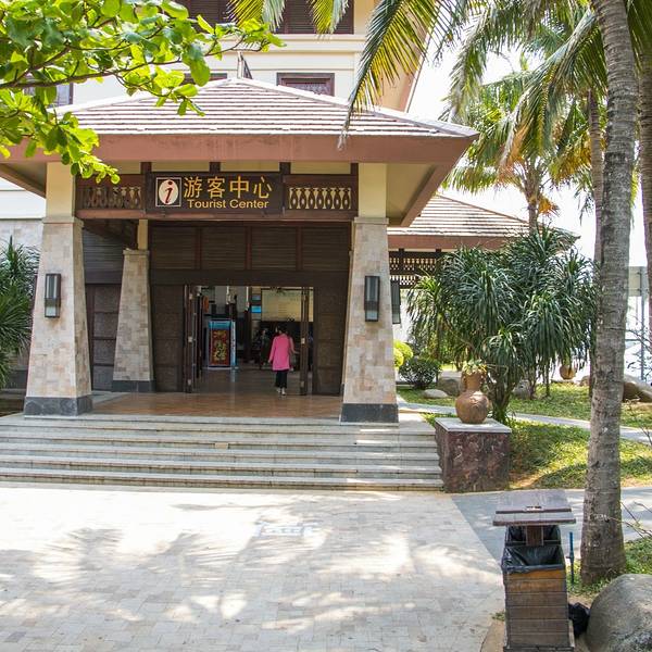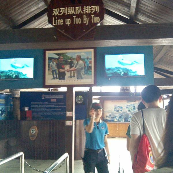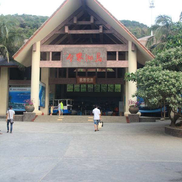 想要深度游,所以去哪儿预订了分界洲的钓鱼会所,700大洋,送了夜潜观光的票。鹿回头广场附近有分界洲岛4S服务站,从这里可以直接坐车到分界洲岛的,住岛的客人都是免费接送的,不用花路费的说。另外住岛的话是会送门票的,也就是说订了房间的话就不会再另外加收景区门票的费用了。