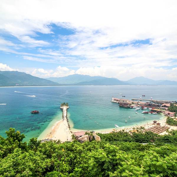 海南分界洲岛旅游区位于海南岛的东南海面陵水县与万宁市分界处。具有热带原始岛屿所有的个性地貌,有明亮松软的海沙,湛蓝透彻的大海,稀有的海洋生物资源、开心刺激的海洋旅游项目等。分界洲岛门票包含往返船票,码头都是用原木搭建起来的,非常有热带风情。在码头乘坐高速客船,15分钟左右便可到达小岛。这里海光常潋滟,山色更清妍。置身其中,令人心旷神怡! 岛上除了有自然景观可以游览还有潜水、海钓、摩托艇、海上拖伞等多个娱乐项目可游玩。另外还有潜水艇、海洋剧场海狮表演、珊瑚观赏区、展示南海海捞瓷文化的海捞瓷区等众多海洋景观、都可以让游客感受到不同凡响的海洋乐趣。 分界洲岛的地貌特殊,有非常洁净的沙滩和丰富的海洋生态资源。山、石、水、礁等一概俱全。海水清澈能见度好、潜水条件得天独厚,被国际专业潜水组织认为是“海南尤为适宜潜水的海域之一”。 独特的“山、海、岛”自然元素也让分界洲岛成为海南独居特色浪漫型海岛景区。吸引了众多情侣来此拍摄婚纱大片和举行海岛婚礼。裹挟着清新的海风,感受着对方的气息,留下了美丽、幸福瞬间,永驻曼妙的海岛时光与恒久爱情! 岛上还涵盖海景、山景、复式等多种不同房型可供游客选择。这些客房按照岛屿貌合理分布,面海靠山,环境优雅。伴着蓝天,白云,大海,让我们在分界洲岛这座海岛上感悟生命,定会有另一番雅趣和野趣!