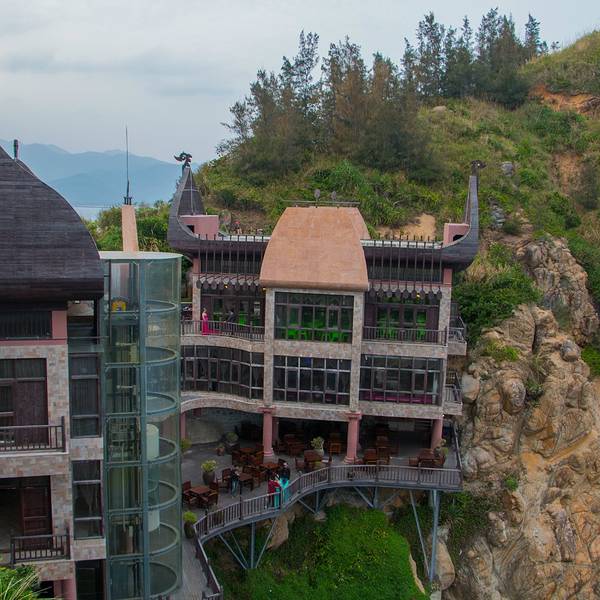 总评:分界洲岛是还在海南读书时就一直想要去的景点,这次有机会前往真的是很高兴了,真个景点风景非常漂亮,在我眼中可以评为最美海岛了,岛屿面积不大不小,还有游览车可以山上山下接送,人文景致都保有海南热带风情风貌,海水湛蓝清澈,开发力度一般,生态保留完好,岛上天然的地理形势,有断崖峭壁还有沙滩海岸,非常值得一游。推荐旅行方式:看到有评论表示门票价格太高,感觉我的方法很划算,和大家分享一下。分界洲岛上只有一个四星酒店(钓鱼会所),平时淡季价格很优惠(500左右),我就是直接预定了房间前往,房间价格包含景点门票价格,来回三亚市中心接送,免费双人早餐以及悬崖餐厅的午餐半价礼券,非常的划算,而且我一向认为这然安静美丽的海岛就是需要静静的住一样,等到下午6点以后游客撤离,感觉自己就像岛主一样,和朋友躺在沙滩看星星,听海浪,聊人生。入夜后不拉窗帘,等待清晨阳光叫醒我们,这才是旅行的正确打开方式嘛。特色:1)海边悬崖及悬崖餐厅,景区内餐厅不少,位于半山的悬崖餐厅特色最为显著,餐厅临悬崖而建,分为好几层,有开放的,也有室内的,一律是落地的通明大窗,眼前是一望无际的大海,湛蓝湛蓝。有一中游轮上用餐的感觉,要是能在这里办婚宴,真是美得睡不着啊!