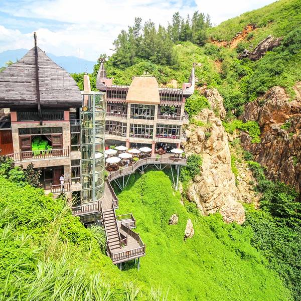 岛上吃饭的问题,旅游区物价肯定是会贵的,但是也并不是说很离谱。我在台湾小吃点了一份蛋炒饭25元,还有一杯西瓜汁18元。峡谷上的餐厅,酒店送的早餐券就是在这个地方享用。一样蔚蓝蔚蓝的海水。换个视角看景点。 展开