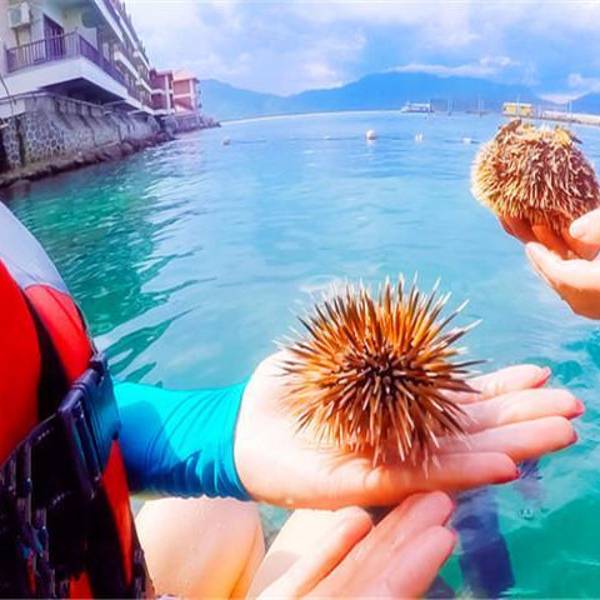我们是一群敬业的吃瓜群众表演结束可以在工作人员的带领下摸摸这群可爱的小动物大鲸鱼,缓慢的游过来,这个我们不敢动,驯养员说这个脾气也是很温驯的,但是我们还是怕怕的可爱的小海豹,看他们温油的小眼神,我差点就被感动了,脾气好温顺,真的,像小宠物一样看,这是什么,海龟哦,不知道你们有木有听过一个海龟的品种,叫玳瑁,我感觉这个就是玳瑁,但是小蜜说我不对,后来我们还去问了驯养员,明明就是玳瑁,哈哈哈,其实是我瞎蒙的饿了,得补补肚子,不然等下要走不动了,饭菜一般,都是这样的套餐,小蜜说,看着没胃口就没吃,于是,我一个人,将就将就了然后吃完饭,就去找教练潜水,只看到水面上露出几个不明物体我还是没去,面对这样的海水不能去亲近一下,简直是让人烦恼,别打扰我,我想静静下水前还是有点担心,毕竟是深不见底的大海,但是教练会在后面托着,非常的安全这是下水前教练会教给学员们的潜水手势,如果你也想去潜水,可以提前学习一下的,其实小蜜就学会了一个,就是说上去,这个是最重要的,再说水下感觉到不舒服就要马上上去,因为水下的情况谁也不清楚,多注意总是好的小蜜在水下拍的照片,我还嘲笑了一番,好丑,不过,据她的回忆,在水下很好玩,那些色彩斑斓的小鱼就在身边,一碰就跑得很快,像兔子一样,很有趣上岸的时候还给我带了一个礼物,无意间看到的海胆,在教练的同意下捞上来了,像个小刺猬岛上的珊瑚馆,可以看到这样像摆件的珊瑚,这都是真正的珊瑚哦,并不是人造的吹着这样的海风,一扫之前的所有烦闷,想到开始我们对于分界洲岛的误解,现在却觉得这个小岛有着一种特别的魅力清澈的让人想要拥抱的海水,还有细腻洁白的沙滩,海风吹过来的时候不仅能在风中闻到咸咸的味道,还有清新属于热带的味道拥抱大海,就是这样的迫不及待只要能拍美美的照片,多辛苦都愿意,何况这愉快的心情并不是假的啊,是真的很开心,湖南有湖,但是湖南没有海,湖南的湖也很美,但是不能下去亲近亲近这是那天最美的一张背影,真正的面朝大海,春暖花开 展开