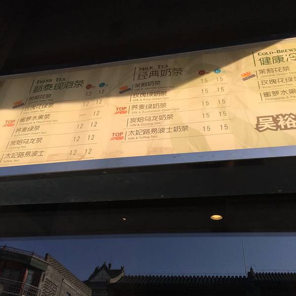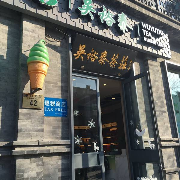 吴裕泰是有名的北京茶叶店,出售冰淇淋的门店不多,地安门这家因为靠近钟鼓楼,南锣鼓巷和什刹海所以也算是旅游地点,兼具出售冰淇淋、杯装的成品泡茶等,不少外地人乃至外国人都来排队品尝,生意不错。 冰淇淋就2种,售价都是6元一个,茉莉花味道的味道微微苦涩,其实闻起来味道就挺苦的,口感也很清凉,是我个人喜欢的品种;抹茶味道偏甜一些,口感比茉莉花的柔滑,这2个单品算是镇店之宝,几乎人人必店。泡茶一杯12-15元,个人觉得价格略贵,分量也不是很多,我个人不是很喜欢。但客观的说吴裕泰茶叶的品质还是蛮好的,用的都是店内自家原料,所以不喜欢吃冰淇淋的人可以考虑点茶喝,总比可乐之类的健康些。