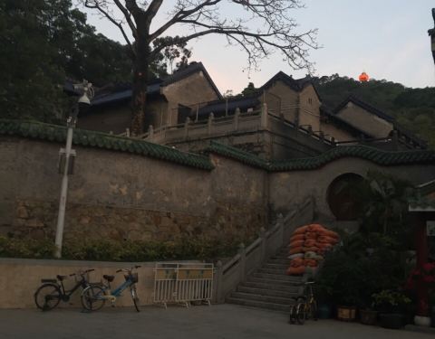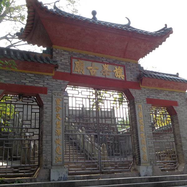 【路线指引】【涡岭草岭路】全景这家的牛杂不错,只不过太早了还没。前面横着的就是【东城路】,由于是该路段的中段,所以叫【东城中路】,这个和地图上的标注是有出入的,大家请注意。沿着这条路走下去就可以在左边看到【旗峰公园】的大门了这就是路牌了从酒店出发,约20min到达【旗峰公园】的大门,作为东莞八景之首的景点,不要门票免费进入还是挺舒心的。来张近景,修缮过的大门还是挺新的,也很庄严,喜气十足入园后映入眼帘的就是片绿意盎然的人工湖,感觉心旷神怡。万绿丛中一点红。亭台朱栏沿着湖边走就可以看到【奇峰古寺】了,这是后门,所以是关闭的。沿途卖香火的小店【黄旗观音古庙】绕道前门来了,这里算是东莞境内不多的寺庙,香火鼎盛。公园内有座【旗峰上】,不到200m高,所以基本不费什么力气就能登顶。顶峰的卖艺人【顶峰的标志】一个红色的圆球,感觉挺搞笑的因为东莞本来也不是什么旅游景点,所以也不能要求太高,这里有山有湖的,算是这座喧嚣城市中一个清静的地方,周末来踏青或者散步还是挺好的,山不高也不抖,适合老年人游览。