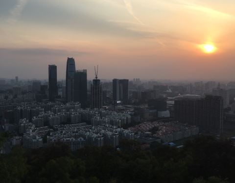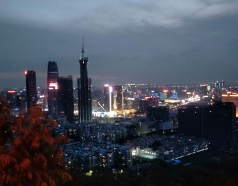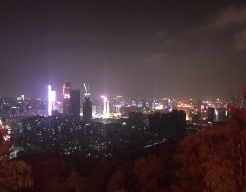 下来的时候选择斜坡一会就到了山脚,出了门就是在市区,地铁到旗峰公园。夜晚去爬山,山顶风很大,景很美