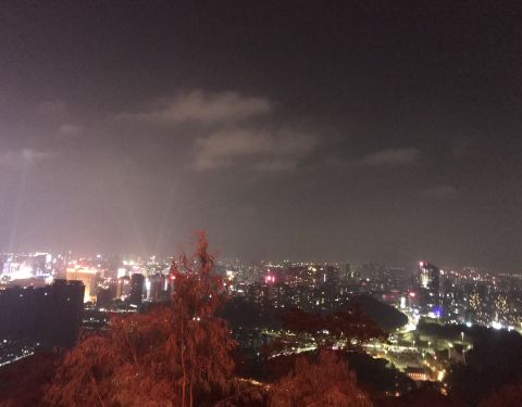 ... 人特别的多 山也不是很高 爬不到半小的就到山顶了 在那里看夜景的人特别的多 晚上的夜景也很美