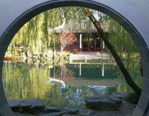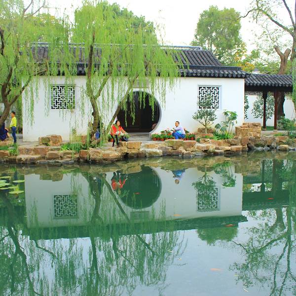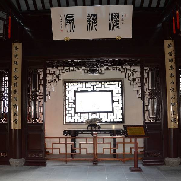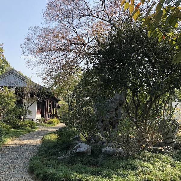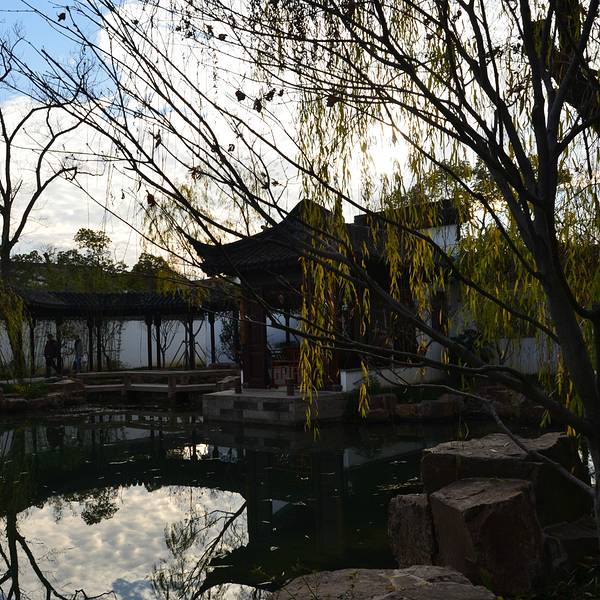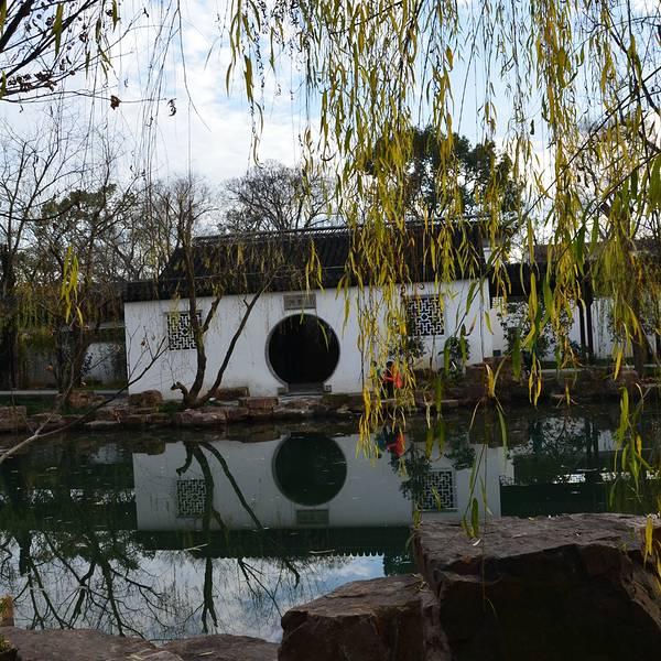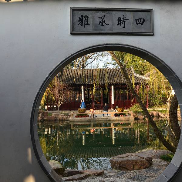 可园坐北朝南,与沧浪亭隔水相对,可园本来是五代节度使孙承右别墅,北宋作为沧浪亭的一部分,为韩世忠的宅邸,占地20余亩,有挹清堂、坐春舻、濯缨处等景致有免费的导游定时讲解服务穿过门厅,是一个圆孔的石门,写着“四时风雅”四个字,现在虽然是冬天,但景色依然很美左右两侧都有门可以进入正园园子的精华之处就在一潭池水四周