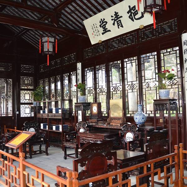 坐春舻晴日游园,天光云影共徘徊,景色十分秀美濯缨处,大概是古人读书的屋子学古堂,里面有一方长塌,可以躺在床榻上休息挹清堂,是一个四面全是落地玻璃窗的厅堂,南临池塘,北靠假山,风水很好博约楼是一栋两层小楼二楼墙壁上挂满了书画,供人参观背后的黄石假山和亭子一座盈溢着浓浓书卷气的江南园林【建议游玩时间】建议游玩2小时左右