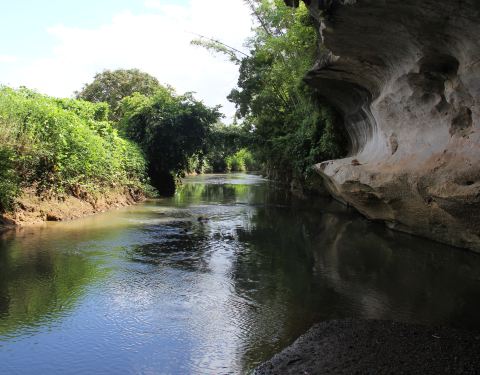 水月岩是玉林一处新发掘的溶洞景观,有着浓浓的原生态气息。千姿百态的钟乳石让人惊叹,徐霞客也曾在此留下了足迹。水月岩中有一个暗洞,名叫“藏过朝”,分明洞和暗洞两段,洞口石壁上有明代石刻“水月岩”三字。山顶有一个通漏的小洞,日光透过小洞洒下了,好比溶溶月色。它名字还有一段传奇的故事,相传明惠帝(明太祖朱元璋之孙朱允炆)曾经在这里避过难,后来当地群众就称它为“藏过朝”。