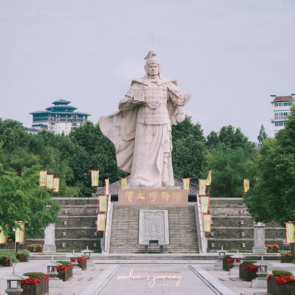 也正是这一事件,让韩信登上了楚汉相争的历史舞台,助刘邦夺下了半壁江山。拜将坛的中轴线上最显眼的当属韩信大将军的石像,他高大威严,周围郁郁葱葱的绿植都只是他的陪衬。