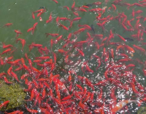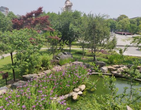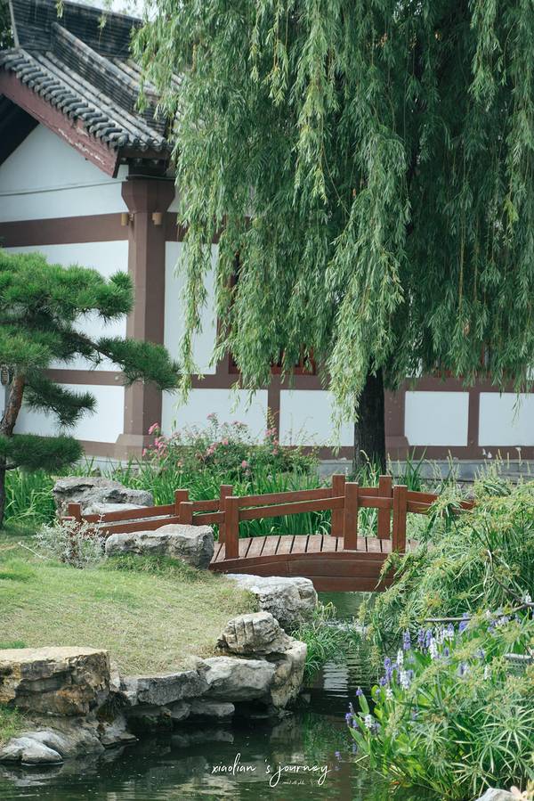 木桥、流水、小亭,游鱼,盛绽的各类花朵都构成了一处处好看的造景,我们流连于此,听水声、逗小鱼、拍拍照,也觉安逸。