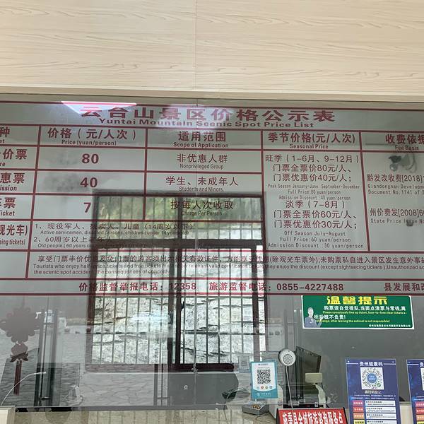 具体的现场门票优惠政策见下图。我们的游览线路是先步行走到头——樱桃湾。其中五指峰是云台山的标志性景观云台山与河南焦作的云台山重名,大家一定不要看错攻略。前者虽然贵为“世界自然遗产”(南方喀斯特),但无论从知名度还是游客数量都远远不及后者,施秉的旅游宣传工作还有很大的改进空间。