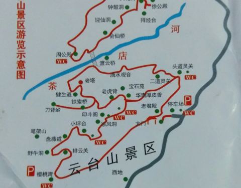 提前一天在线上预定的价格与现场购票相差很大,导游挂证即可进入(本人导游,免票)。具体的现场门票优惠政策见下图云台山范围很广,如果全部玩完至少得2天时间,北面黑冲那边多为废弃的寺庙,如果仅玩一天可以放弃那边。二者的分界就在渡云桥,见下图红圈处。我们的游览线路是先步行走到头——樱桃湾。然后是“排云关-野牛洞-盘藤道-五指峰-映斗阁-太婆石-宝石苑-老虎背-刀背岭-姥塔-渡云桥-二道灵关-头道灵关-出口”。9点进入,5点半出门。整整一天的时间。其中五指峰是云台山的标志性景观。需要特别注意的是,宝石苑是分岔路口,如果不是体力非常强大的话,不建议走到姥塔的线路,那条线路基本已经废弃,道路十分难行。到了宝石苑以后,最多走一个老虎背和刀背岭就可以返回了 展开