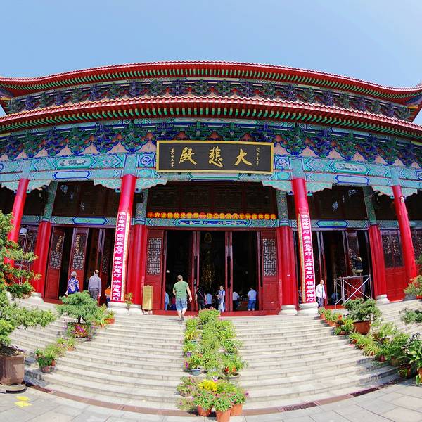 数数罗汉测凶吉,在大悲殿内转观音像,祈求心想事成。
