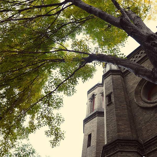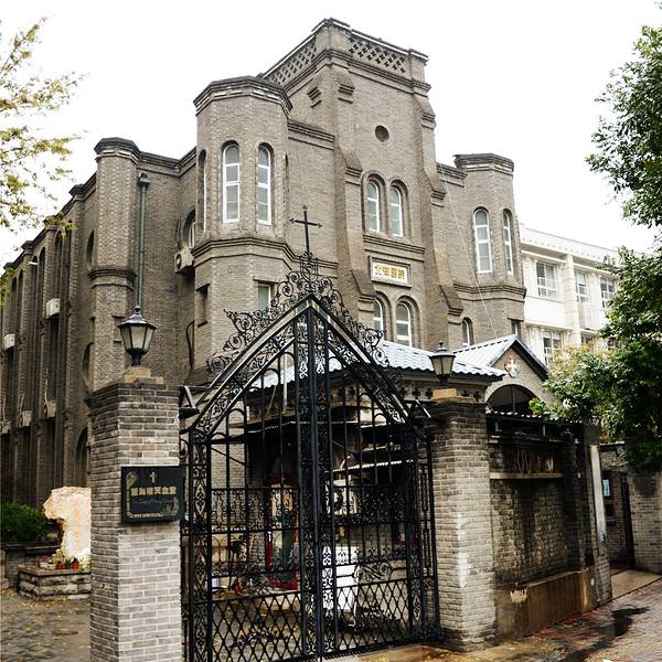 过了桥就能看到望海楼教堂,画风立刻变得肃穆起来。很喜欢很喜欢这张照片的视角~靠近仰视,感觉更高了过了桥就能看到望海楼教堂,画风立刻变得肃穆起来。望海楼教堂旧称圣母得胜堂,以其旧址望海楼而得名。于1859年底建成此堂,具有欧洲哥特式建筑风格。门前灯柱旁边的十字架。大铁门正中央也是十字架,一直很喜欢...过了桥就能看到望海楼教堂,画风立刻变得肃穆起来。望海楼教堂旧称圣母得胜堂,以其旧址望海楼而得名。于1859年底建成此堂,具有欧洲哥特式建筑风格。门前灯柱旁边的十字架。大铁门正中央也是十字架,一直很喜欢十字架的形状,虽然我不是教徒,但是感觉任何造型都很美啊。建筑正面有平顶塔楼三座,排布呈山字形。法国传教士给这座教堂取名为"圣母胜利之后堂",并将此名用法文刻在教堂钟楼正面的大理石上。去的时候教堂没有开放,只能在院内看看外观。院里的另一座建筑,好像是个医院?大树参天。靠近仰视,感觉更高了。很喜欢很喜欢这张照片的视角~ 要被自己美哭了55555深秋落叶满地,一片金黄。环绕一周,也都是类似的青砖,臭美排摆几张之后就离开了。 展开