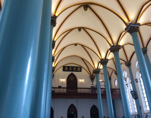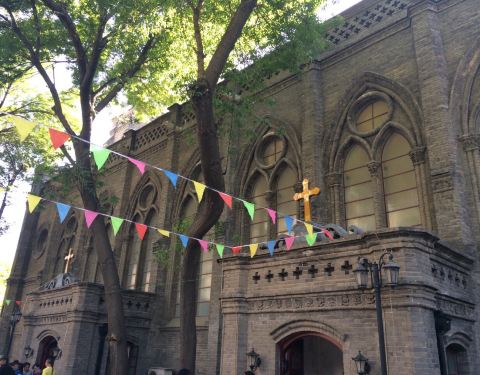 天津最早创建的一家教堂,距离古文化街和天津之眼都不远天津最早创建的一家教堂,距离古文化街和天津之眼都不远。外形看起来很古朴,里面的蓝色内饰很典雅,去的时候似乎赶上母亲节,到处都是人,第一次在教堂看到这么多人
