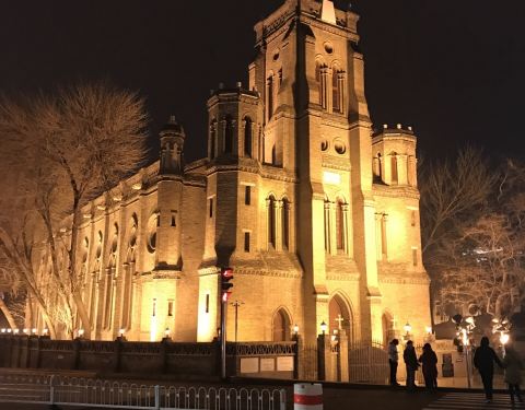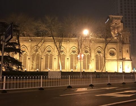 在回酒店途中偶遇的,天津教案的主角,建筑很美。夜里看别有一番味道。