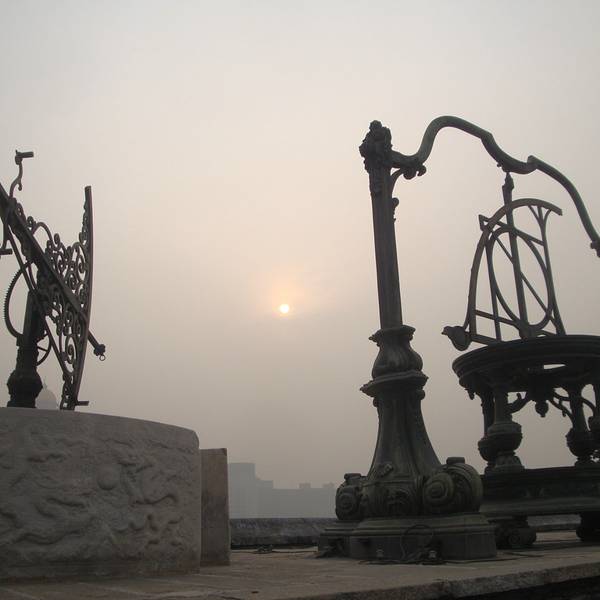 古观象台顶上陈列着古代的天文观测仪器,都有数百年历史了。在古代中国的天文科技还是很发达的。