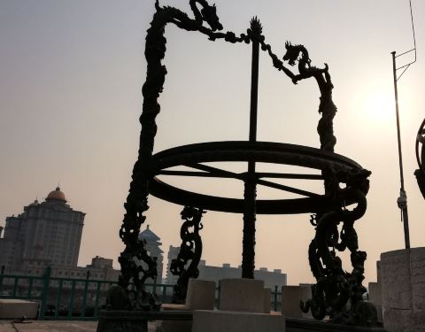 这里的观测仪器都是清朝康熙年间制成的,到今天已经有几百年历史了,在观象台上有七个仪器,都是雕龙刻凤,古香古色,虽然都有介绍,但具体干什么的还是看不懂,不得不佩服古代人的智慧,在科技及不发达的年代,可以设计出这些精密的仪器。