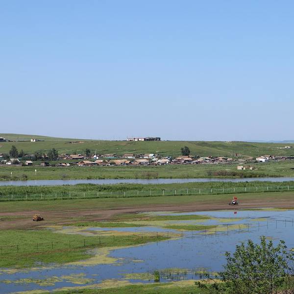 继续上路,沿着莫尔道嘎河和边界线前行。虽然还是各种灰霾,但风景仍然静好。大片大片的麦田,沿着界河把草原都染成了金黄色。 展开