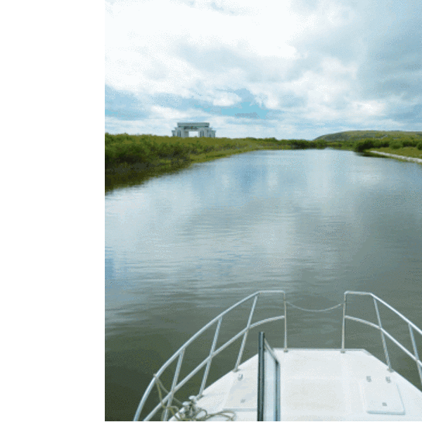 游艇沿河心岛柳丛和水草穿行,不时惊起水鸟振翅飞上天空。河风轻拂人面,令游人顿生惬意十分。俄方小镇近在岸边,房屋街市历历在目。黄头发、蓝眼睛、高鼻梁的俄罗斯人在河边劳作、垂钓、游泳者以及戏耍的孩子们常向我游人挥手致意。也偶有中、俄边防军巡逻艇与游艇相擦而过。这种一水分两国,一目览两岸的情景,令人游兴大增,纷纷端起相机按动快门,以俄方小镇或俄人为背景,摄下这难忘的"界河游"的宝贵瞬间,以作永恒的纪念。