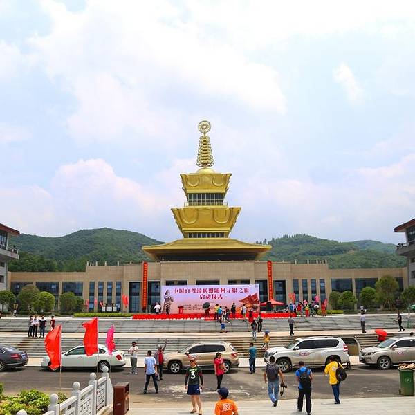 车子一路顺着山路向上行进,蜿蜒盘曲的山路像是线用针穿在群山中一样。此处已经能看见寺庙最高处的金顶太阳毫不吝啬的释放着它的热情,刚下车,就感觉热浪扑面而来。声势浩大的自驾游车队整齐的停在景区门口,估计得有上百辆。头上顶着大太阳,中国自驾游联盟随州寻根之旅启动仪式开始,各位领导和代表上台致辞。随...太阳毫不吝啬的释放着它的热情,刚下车,就感觉热浪扑面而来。声势浩大的自驾游车队整齐的停在景区门口,估计得有上百辆。头上顶着大太阳,中国自驾游联盟随州寻根之旅启动仪式开始,各位领导和代表上台致辞。随着启动仪式球的点亮,中国自驾游联盟随州寻根之旅启动仪式完成。最后由随州相关领导给自媒体人颁发聘书。刚走进景区中央的金顶建筑,便是两层楼高的大型室内佛教景观,二楼出去可乘坐上山大巴。一上午猛烈的太阳使得山上水汽弥漫,吹来的风都是凉凉的,来这避暑绝对是再好不过了。车子一路顺着山路向上行进,蜿蜒盘曲的山路像是线用针穿在群山中一样。路边的野花开的茂盛又洁白。顺着长长的台阶走到尽头便是慈恩寺,今天的慈恩寺热闹非凡,不断地有人上山下山。终于见到了大慈恩寺的真面目,因为是几年前重建的,所以看起来缺少一点岁月的痕迹,不过慈恩寺重修的基础是在原旧址下挖的,所以也算是对得起这块充满历史的宝地。大慈恩寺主体以大雄宝殿为中心,成十字形展开,中轴线主体建筑依次为山门、天王殿、大雄宝殿、法堂。大雄宝殿作为寺庙里的主殿,已经有不少人在里面参拜祈福了。寺庙还是很容易看出是重建的,七级浮屠塔一看就知道是新的,树木也很矮小。不过我想只要好好维护,然后经过一个世纪的风吹雨打,慈恩寺一定会回归几分古朴。走过藏经阁,往后的建筑突然变得袖珍了起来。此处已经能看见寺庙最高处的金顶。佛足阁是慈恩寺为了纪念开山祖师所建的,据《大洪山志》记载,唐宝历二年(826)秋,善信大和尚南行至大洪山。正好碰上此地旱情严重,乡民准备杀猪宰羊祈求龙神降雨。善信劝众人并自愿代牲登山祈雨并应验,后善信坐化前断双足以谢龙神。善信和尚牺牲小我成全大我的崇高精神值得大家尊敬。终于快要到达金顶,我已经等不及要上去领略一下它的风采。金顶四侧都有楼梯,不过只有正前方的门是开着的,供游客进去参观。从金顶上可以俯瞰整个慈恩寺。一直觉得,在山顶上造寺庙,光把材料运上来就已经是功德一件了。大洪山的洪山禅寺门前有着一颗千年银杏树,是洪山寺和尚在一千多年前建寺的时候种的,现在早已成为镇寺之宝。树很大,估计得要7、8个人才能环抱起来,树上的红丝带大多都是写着家庭和睦,身体健康之类的祝福语。两位年轻人正在挂上自己的祝福。民间有这样一个传说,那就是洪山寺下院建在九条龙的龙头处,古银杏正好压在了龙眼之上,如果砍掉此树,九龙将掀起狂涛巨浪,大洪山一带就会变成汪洋大海。所以,千百年来无人破坏它一枝一叶。虽然只是一个传说,但这颗银杏树能屹立千年而不受摧残,或许真有这个传说的不少功劳。 展开