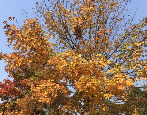 ...,因为时间关系,没有爬山,但被门前的几棵五叶枫惊艳到了,五叶枫开的妖娆灿烂,红的血红,黄的金灿不远百里来到大洪山,因为时间关系,没有爬山,但被门前的几棵五叶枫惊艳到了,五叶枫开的妖娆灿烂,红的血红,黄的金灿。在绿树掩映中自在怒放。太美啦