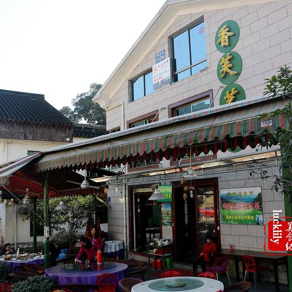 香芙茗茶楼,地址:梅灵南路梅家坞112号。推荐:茶香排骨,海胆石锅豆腐,铜盆酱油鲜虾。 PS: 需排队,可提前在大众点评排队。