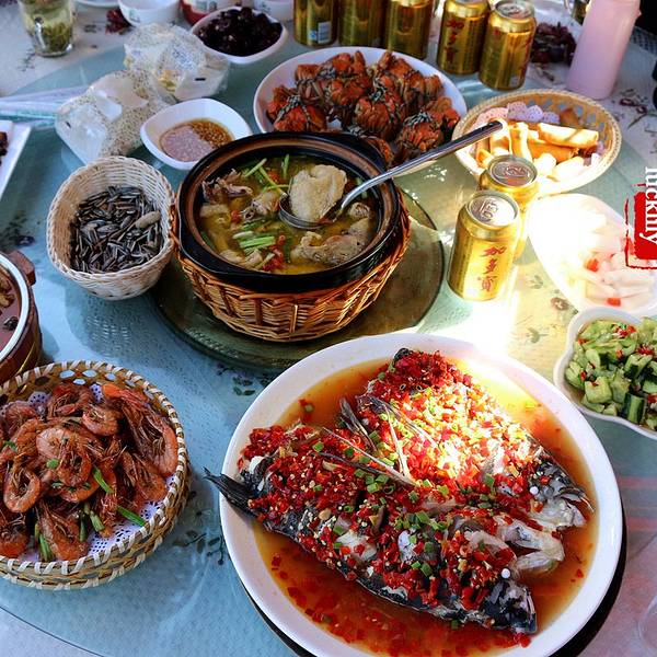 - 味道就很家常的味道食材比较新鲜都偏油。老板的态度很亲切直接坐到你这桌和你一起点菜。还热情的给各种建议