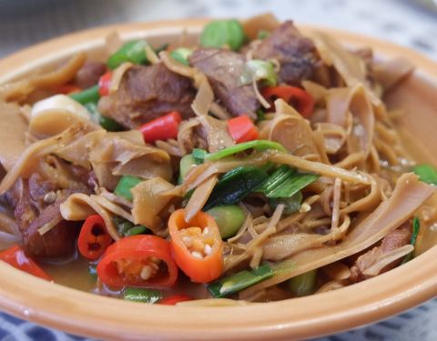 推荐:茶香排骨,海胆石锅豆腐,铜盆酱油鲜虾。香芙茗茶楼,地址:梅灵南路梅家坞112号
