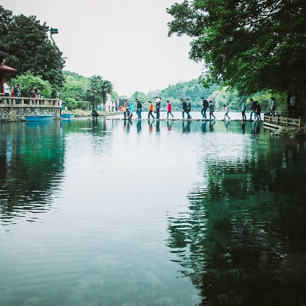 金骆驼 由于老山山脉的石炭岩地质形成了多泉水的环境,延锦二十公里的老山形成了两大泉水群:西南有汤泉温泉...珍珠泉位于南京市浦口区定山西南麓以西,自古便是金陵“江北第一游观之所”。其地下水源丰富,水质优良,是南京主要的地热资源之一。明人盛赞珠泉甲于江北,远近游人络绎如蚁,绮罗弦管,辉映山谷。珍珠泉风景区...珍珠泉位于南京市浦口区定山西南麓以西,自古便是金陵“江北第一游观之所”。其地下水源丰富,水质优良,是南京主要的地热资源之一。明人盛赞珠泉甲于江北,远近游人络绎如蚁,绮罗弦管,辉映山谷。珍珠泉风景区对于生活在日益拥挤喧嚣的城市人来说,环境的清新与宁静已是金钱难买之物了。区内的湖光山色,足以将纷乱繁杂的心绪滤净,让人获得少有的静谧与清鲜,似有一种回归大自然母亲怀抱的温馨舒适感。上得竹排,用篙只轻轻地一点,竹排便悄然离开岸边,随着竹篙在竹排两边撑点,竹排平稳地向前行进,听不到涛声,看不见骇浪,只有自己的影子在水中忽长忽短,忽左忽右地摇曳、变化。累了,将竹篙横在腿上,将双脚伸入水中,让清凉渗透心田,任竹排随意游,或者将竹排撑到岸边,停在柳荫下,一任柳丝在你的面前飘拂,抚摸你的脸颊,体味清静无为独处时的妙处。由于老山山脉的石炭岩地质形成了多泉水的环境,延锦二十公里的老山形成了两大泉水群:西南有汤泉温泉,东北有珍珠泉。以珍珠泉为代表的泉水群,古称“九九八十一泉”,现已查明 30多处。最著名者为:珍珠泉、卓锡泉、琥珀泉。 展开